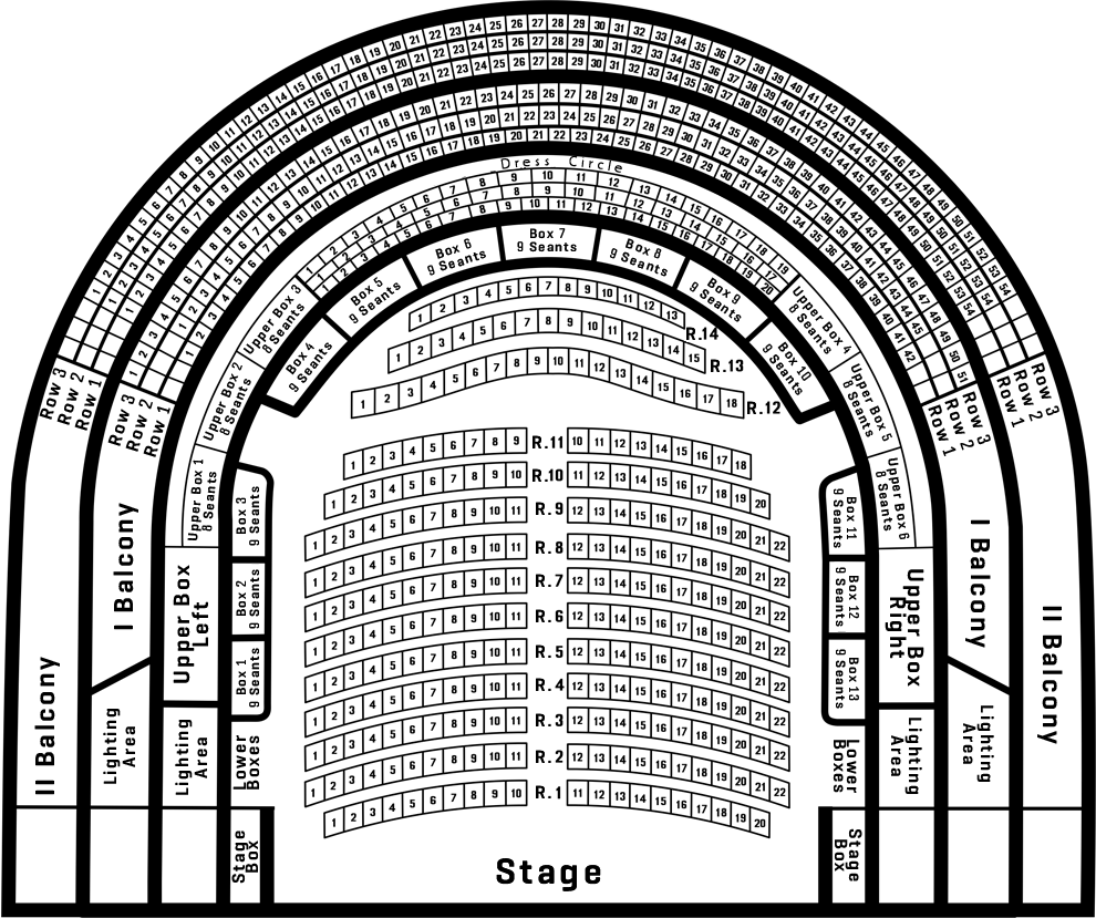 Chart displays the seating plan of the theatre to help you select the desirable seat.